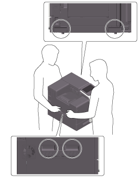 When moving this machine, at least two people are required to do so. To prevent toner from spilling, keep this machine horizontal when carrying it.