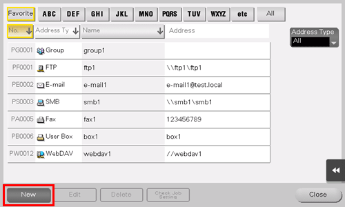 To register a group, you must register the one-touch destinations to be added to the group in advance.