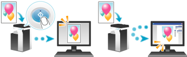 This function imports original data by issuing a scan instruction from a computer without configuring complicated system settings, or sends original data scanned by this machine to a computer.