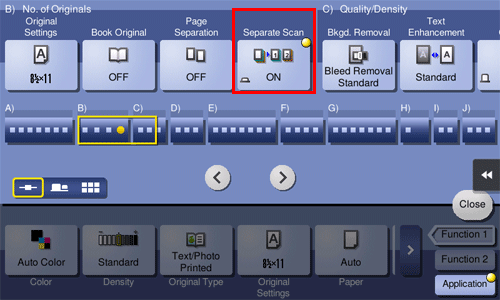 2. Tap [Application] - [No. of Originals] - [Separate Scan], and set to [ON].