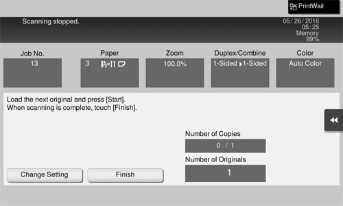5. Load the next original, then tap [Change Setting].
