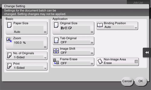 • If desired, tap [Change Setting] to change the copy settings according to the new original.