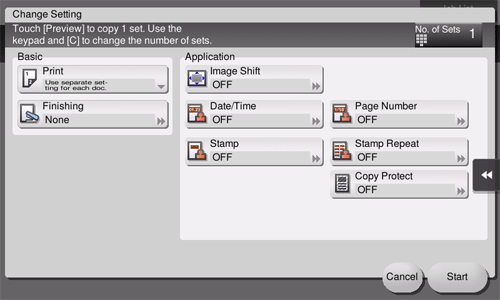 9. Specify finish settings as required, then tap [Start].