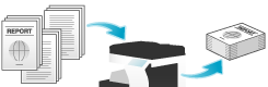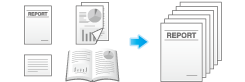 Originals are scanned with different settings for each set, and copied collectively. Use this function when various types of originals are mixed, such as 1-sided original to be printed on one side of paper, and 2-sided original to be copied by enlarging. After all originals have been scanned, you can add page numbers or finishing functions, such as sort, to copy them.