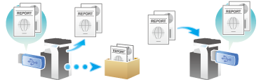 Once you have opened the User Box, you can print out a file stored on a USB memory. Also, you can read the original data and directly save it as a file in the USB memory. You can also move a file from the USB memory to the External Memory User Box.